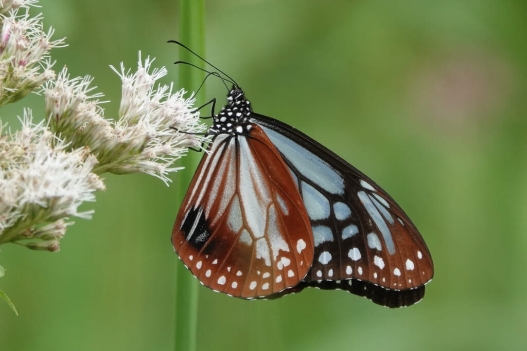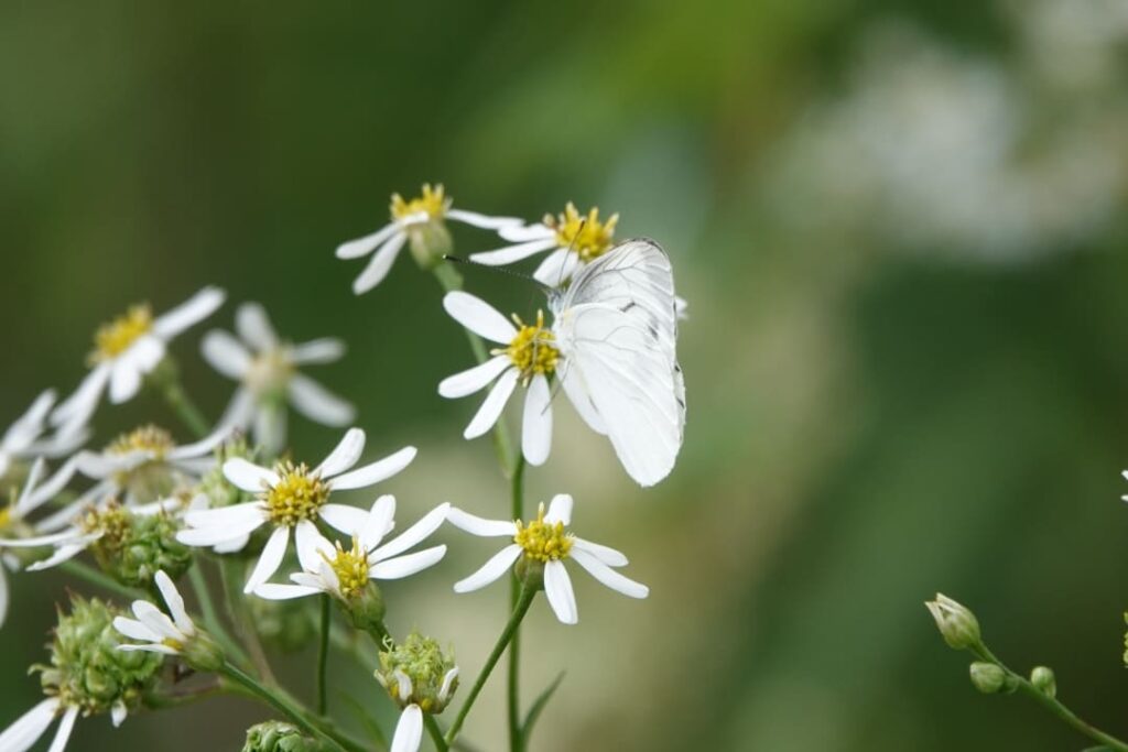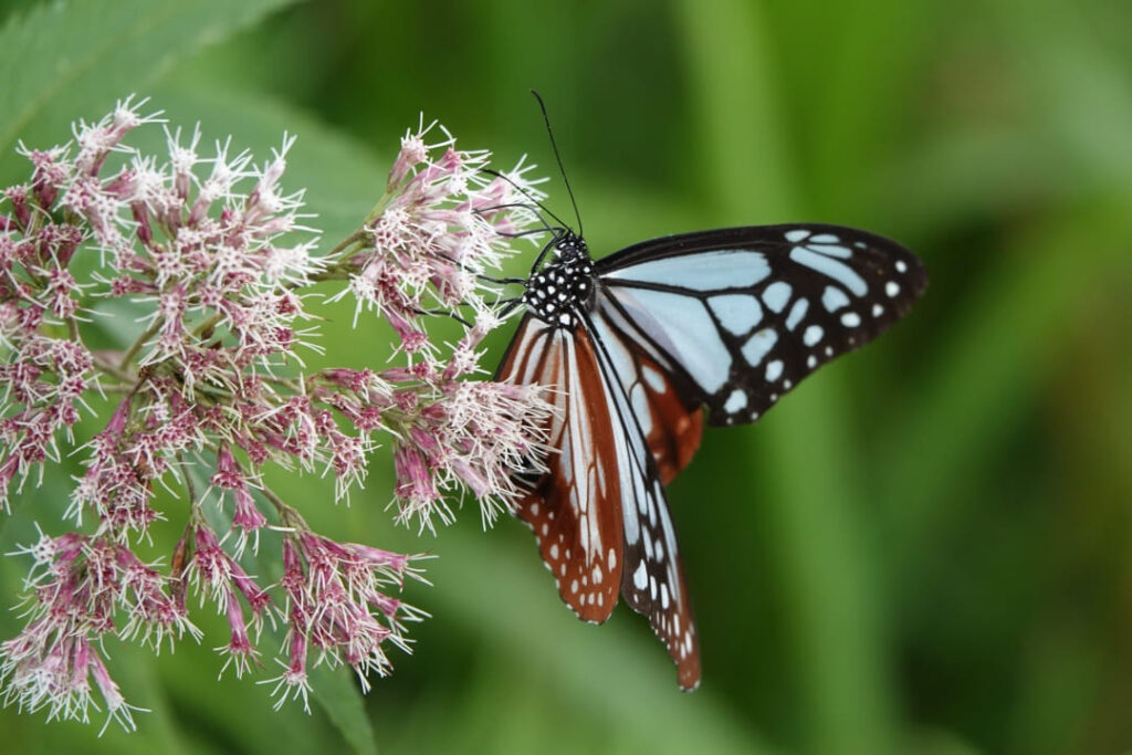 アサギマダラやマルハナバチなどの訪花昆虫をよく見ると、羽は色褪せ、また痛んでいるのが確認でき、花の季節を終え秋を迎えるまでの間、懸命に活動しているのだと実感しました。
