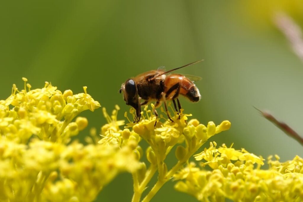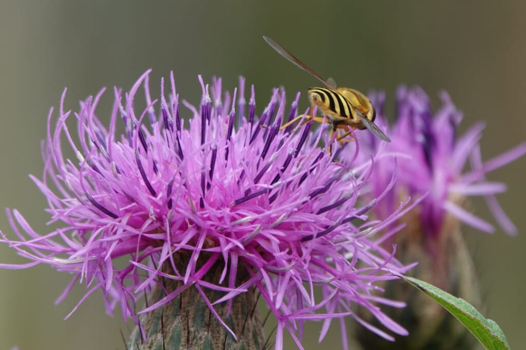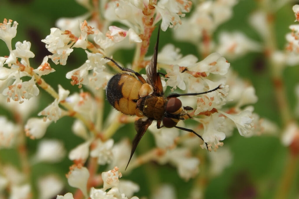 草原の上空にはアキアカネやナツアカネなどアカネ類が大群をなして飛んでおり、マルハナバチやミツバチ、ハナアブやヒラタアブなどの訪花峰類も前回より種類や数が多かったように思います。