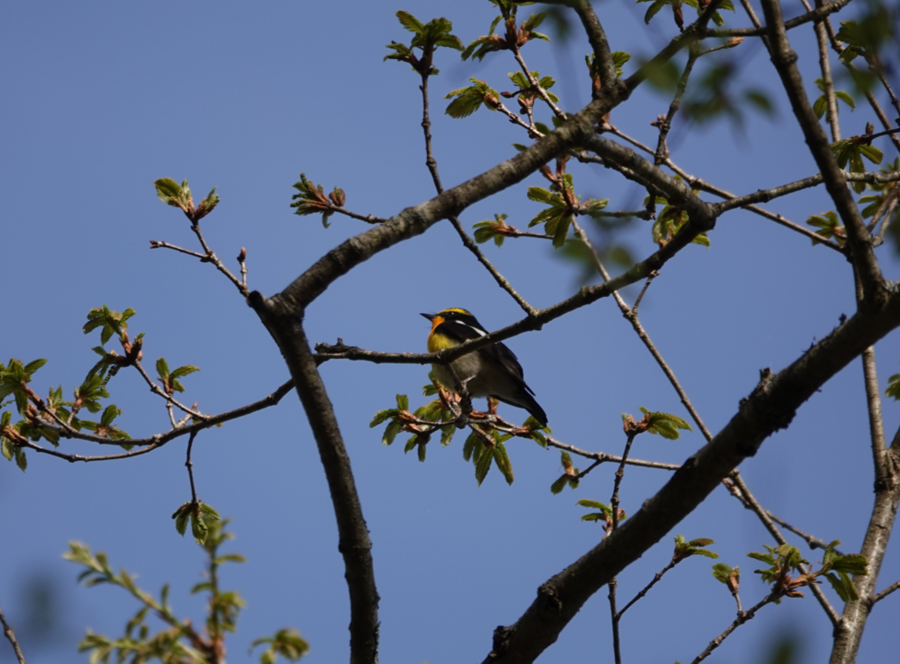 コルリはオオルリと同じく青色がきれいな鳥ですがやや小ぶりです。前回の身延町では姿を見ることができなかったキビタキもこの日は何度か目にすることができました。標高が高く、まだ芽吹き途中の木々もあり、葉が繁茂しきっていなかったのが幸いしたと思います。