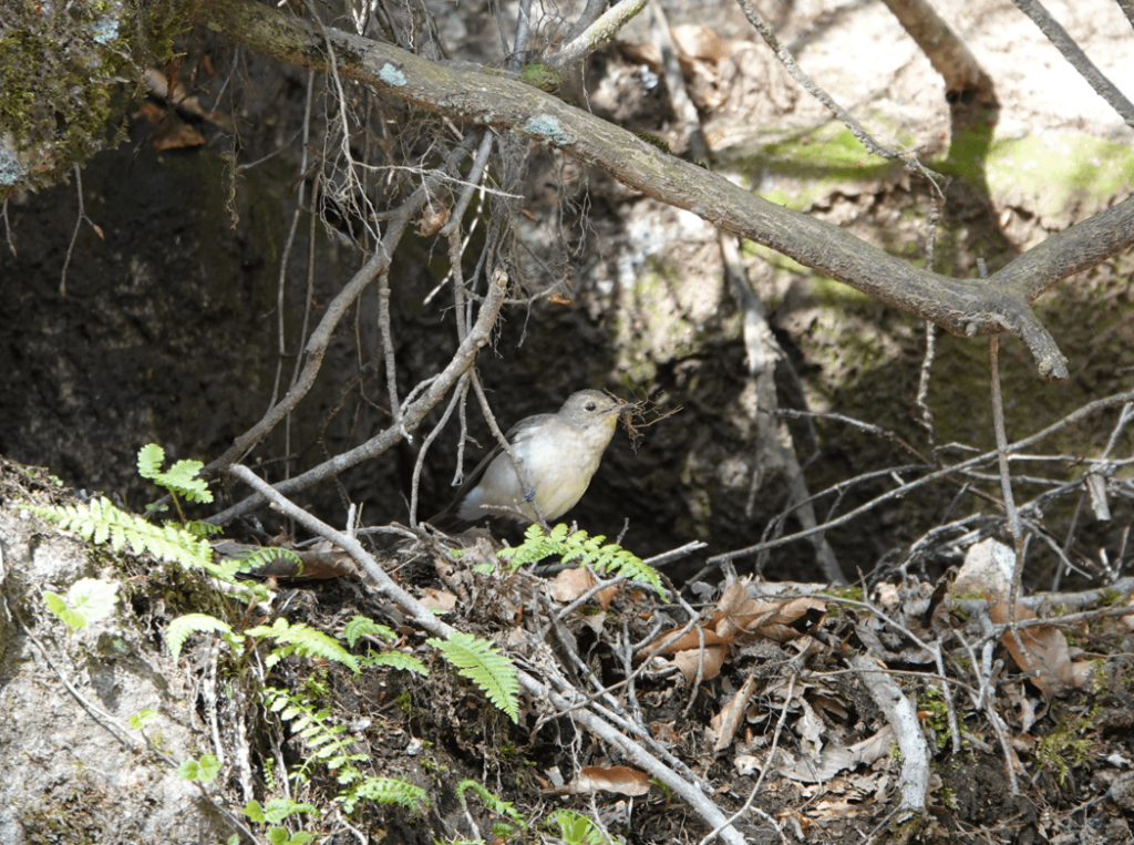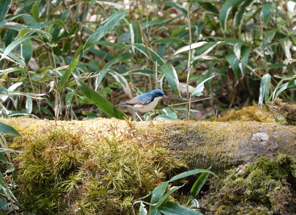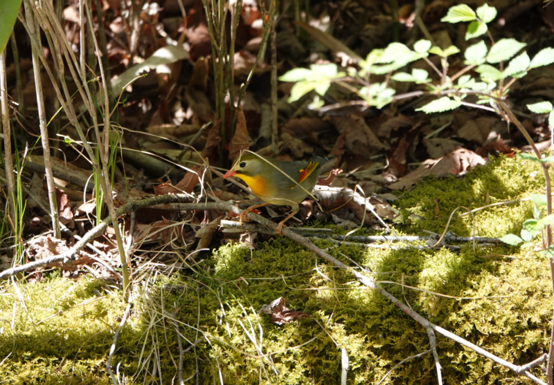 緩やかな林道の途中、コサメビタキが巣作りのため 草をくわえている場面に出会いました。また外来種と呼ばれるソウシチョウも草をくわえて巣作りの準備をしていました。