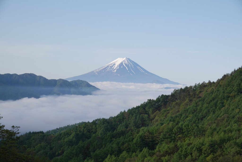 5月GW明け、寒暖差が激しい毎日が続いていますが、久しぶりの晴天日 甲州市の標高1,600mの高地に出かけてきました。今回訪れたのは初めての場所ですが、目的地近くの見晴台から臨む富士山は映画の一場面のようでした。