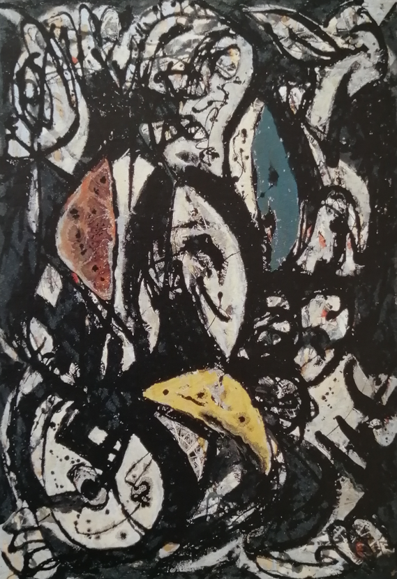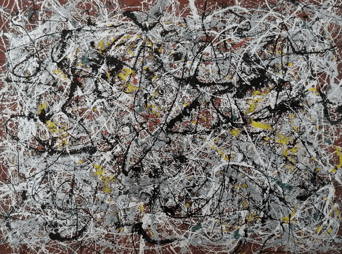 ジャクソン・ポロックは1912年アメリカ生まれで、同じく抽象表現主義の画家、ウィレム・デ・クーニングやマーク・ロスコらとともに戦後活躍しました。ネイティブ・アメリカン芸術やメキシコ壁画、ピカソの影響を受けたといわれています。