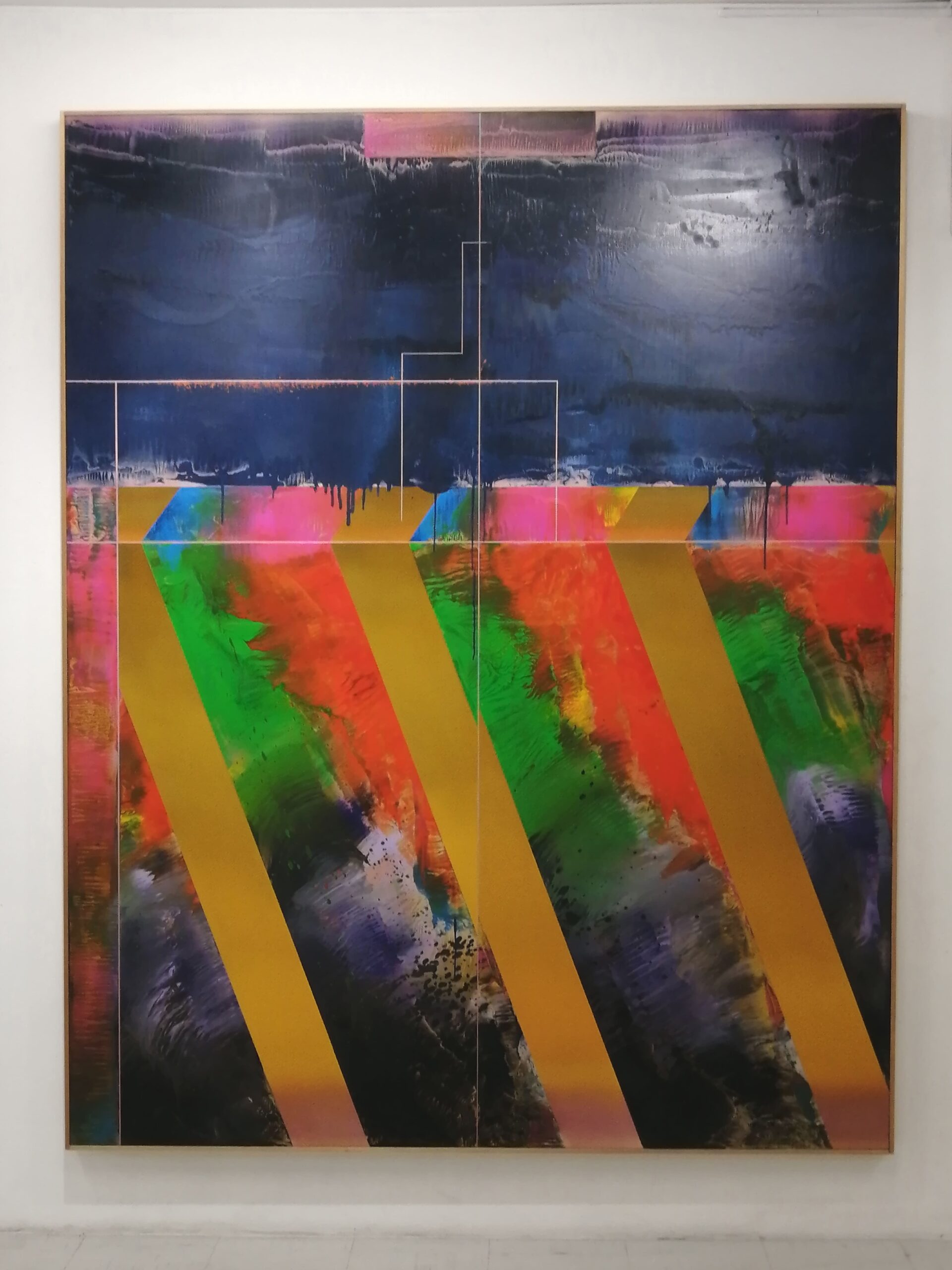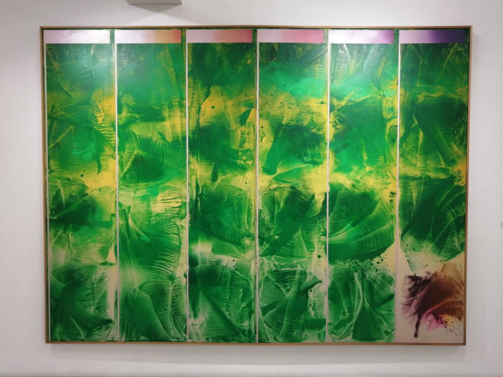 加納光於作品の印象は、深く豊かな色彩や流動感のある画面が際立つ一方で、極めて独自性が高く思想的。文学的でもあり孤高の作品と感じるところです。 今回紹介された展示は1980年代に制作された油絵の大作と1970年代の‘稲妻捕り’シリーズのドローイングです。久しぶりに静かな画廊空間で加納作品を体感することができました。