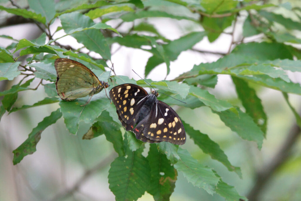 この時期、殆どの個体が成虫に羽化し 施設内では何百匹(頭)ものオオムラサキが舞っていました。まだ6齢幼虫や蛹の個体もほんの少し観察できました。