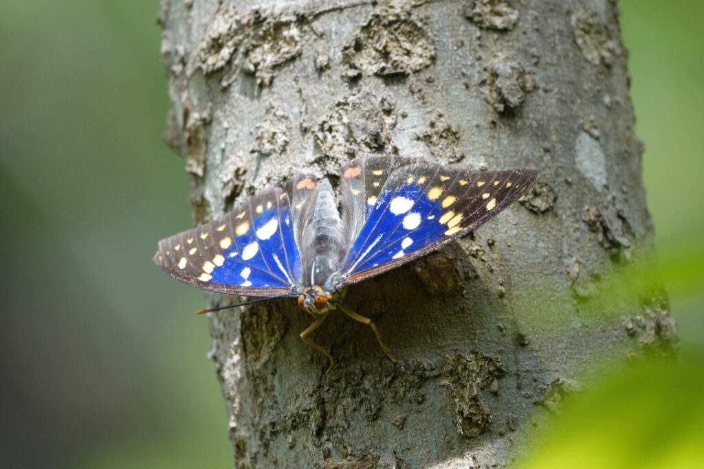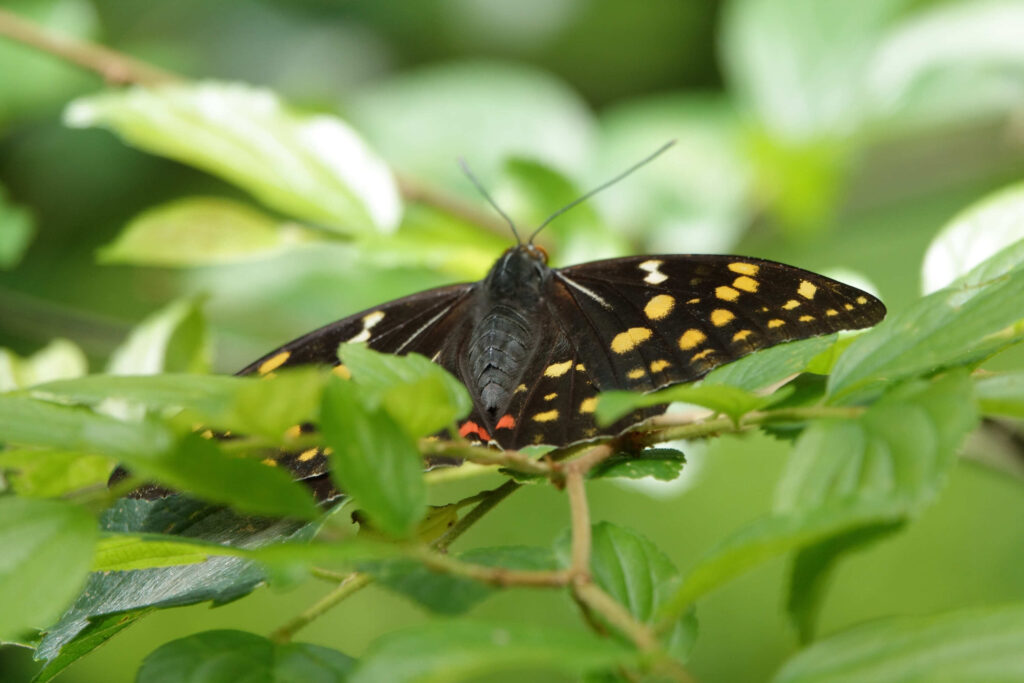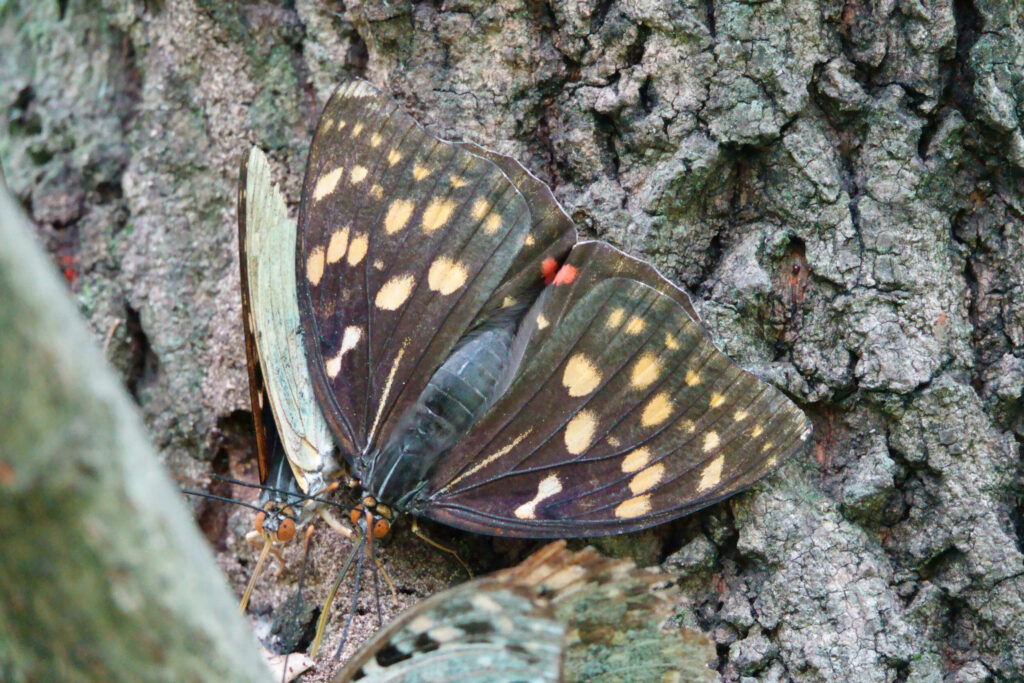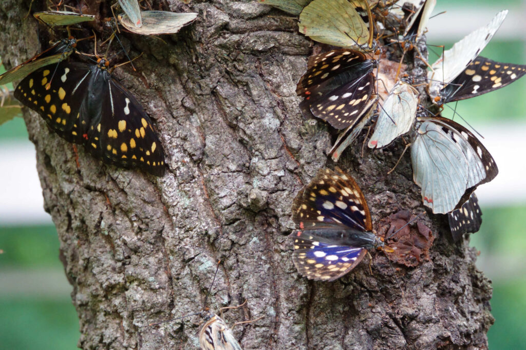 成虫は(幼虫も)、近きで見ると堂々としており、たくましい姿をしています。成虫は同じ樹液を吸うスズメバチやカブトムシらとの競合にも負けないくらい精悍で、まるで蝶とは思えないほどです。