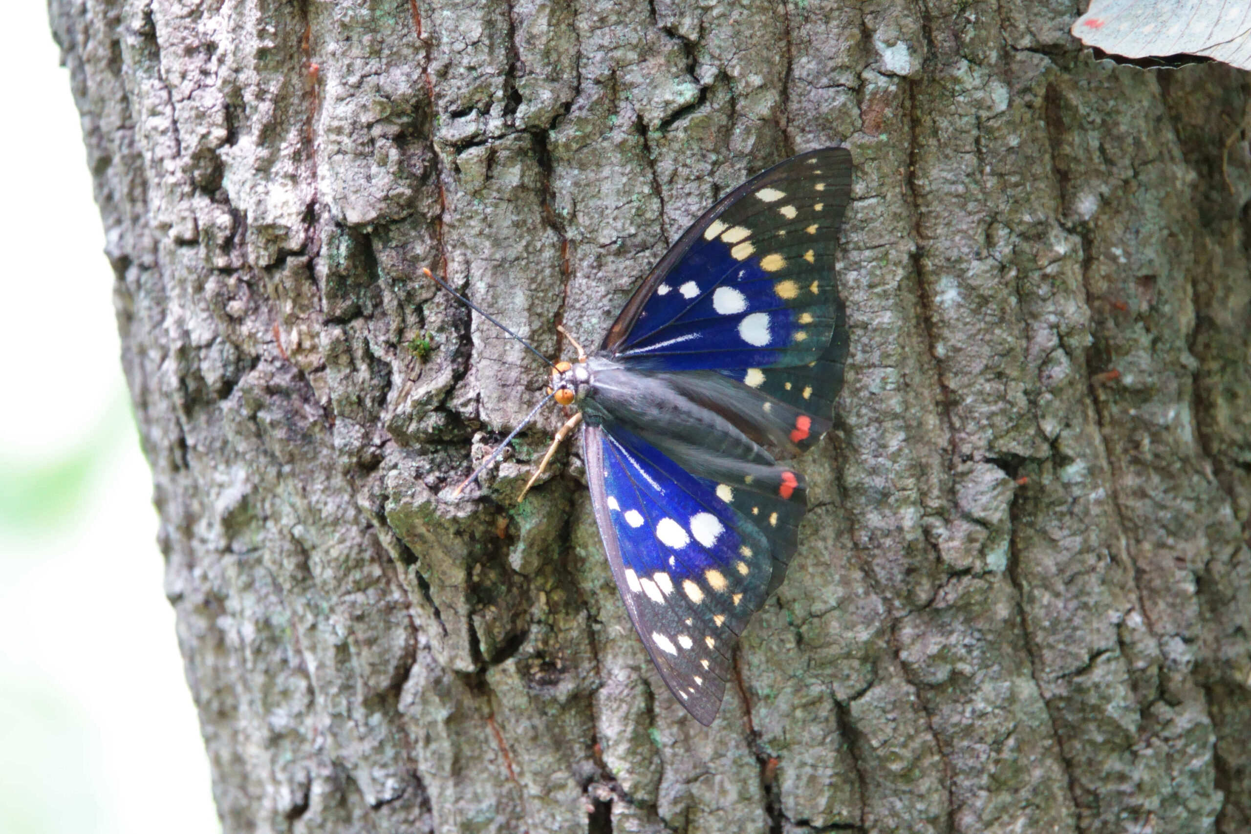 成虫は(幼虫も)、近きで見ると堂々としており、たくましい姿をしています。成虫は同じ樹液を吸うスズメバチやカブトムシらとの競合にも負けないくらい精悍で、まるで蝶とは思えないほどです。