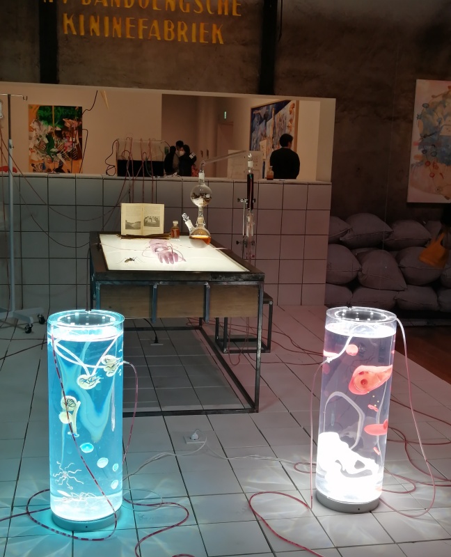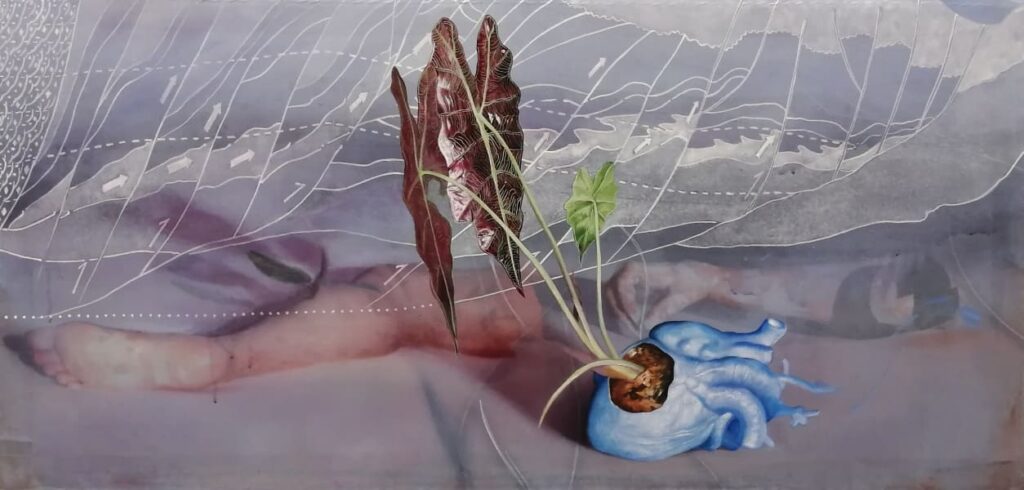 今津 景氏は女性の現代美術作家でインドネシアを拠点に制作活動をしています。今回は国内初の大規模展覧会として油絵やインスタレーション作品が紹介されました。