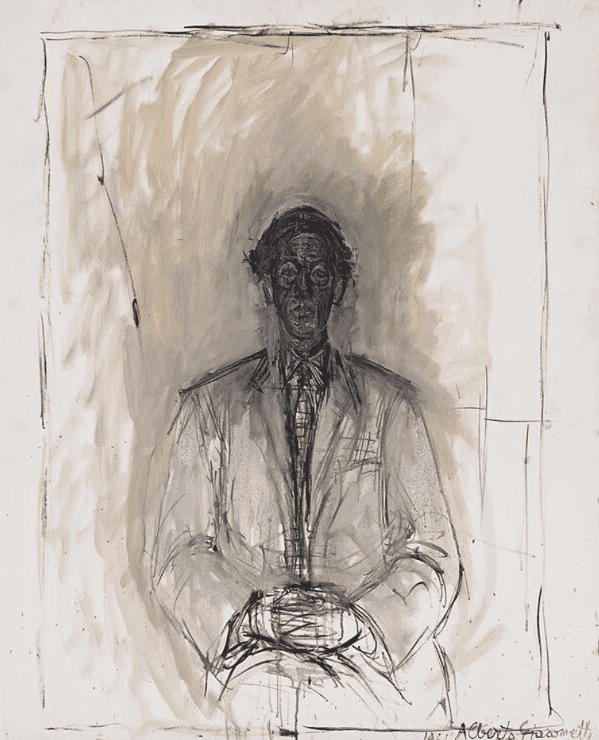 ジャコメティーは絵画も多く制作していますが、いずれの作品も激しく鋭利な筆触が鑑賞者の内面をえぐるような緊迫感を与えます。