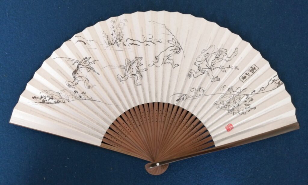 最後に、以前京都を訪れた際のお土産「鳥獣戯画図柄の扇子」と、2007年にサントリー美術館で開催された鳥獣戯画展で購入した「ミニ絵巻(レプリカ)」を載せたいと思います。