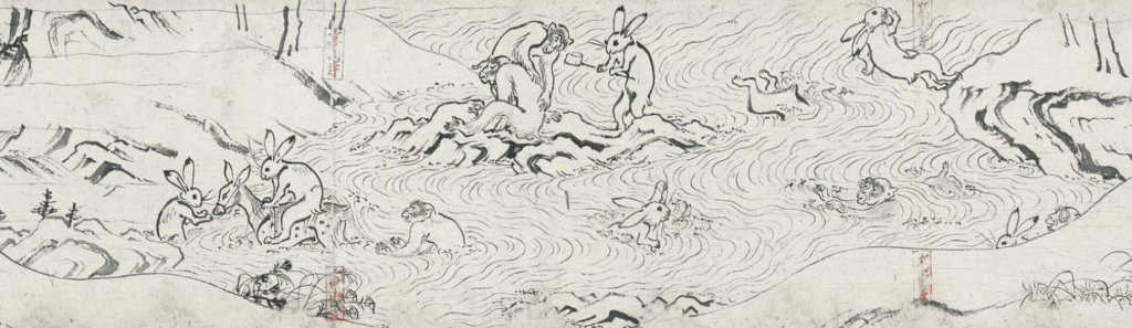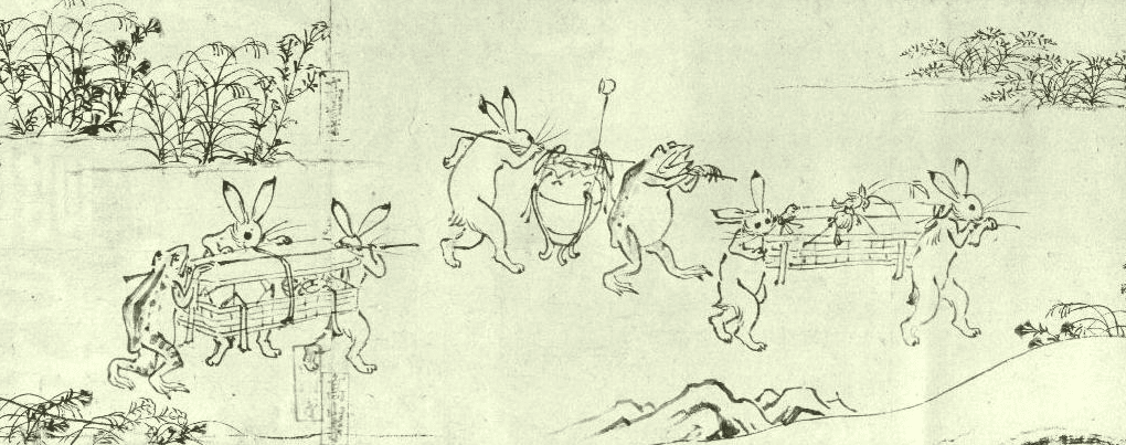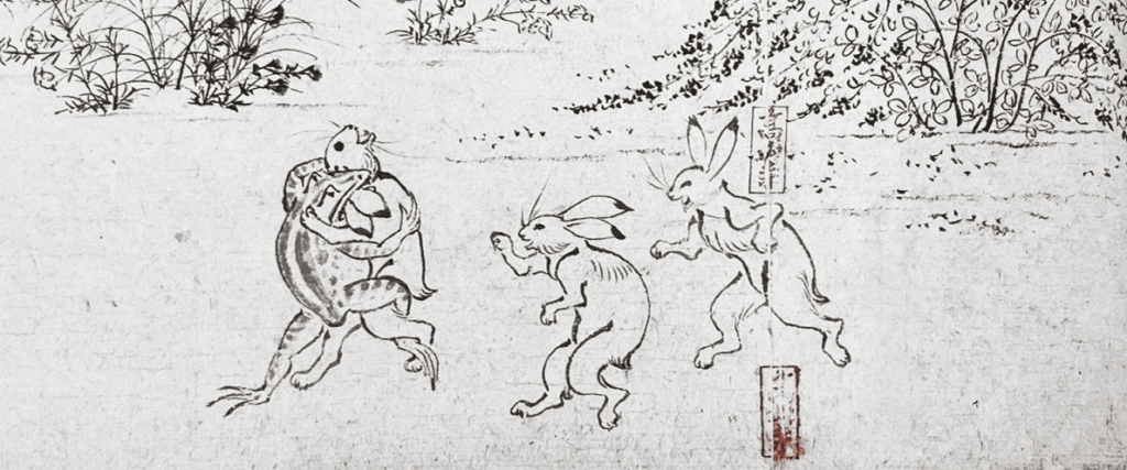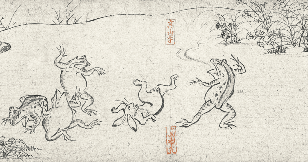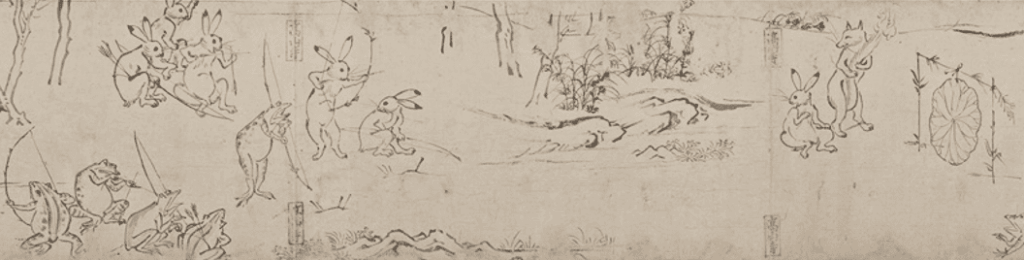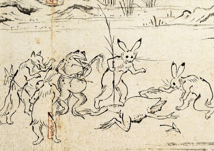 京都高山寺が収蔵する墨絵による絵巻物 鳥獣戯画