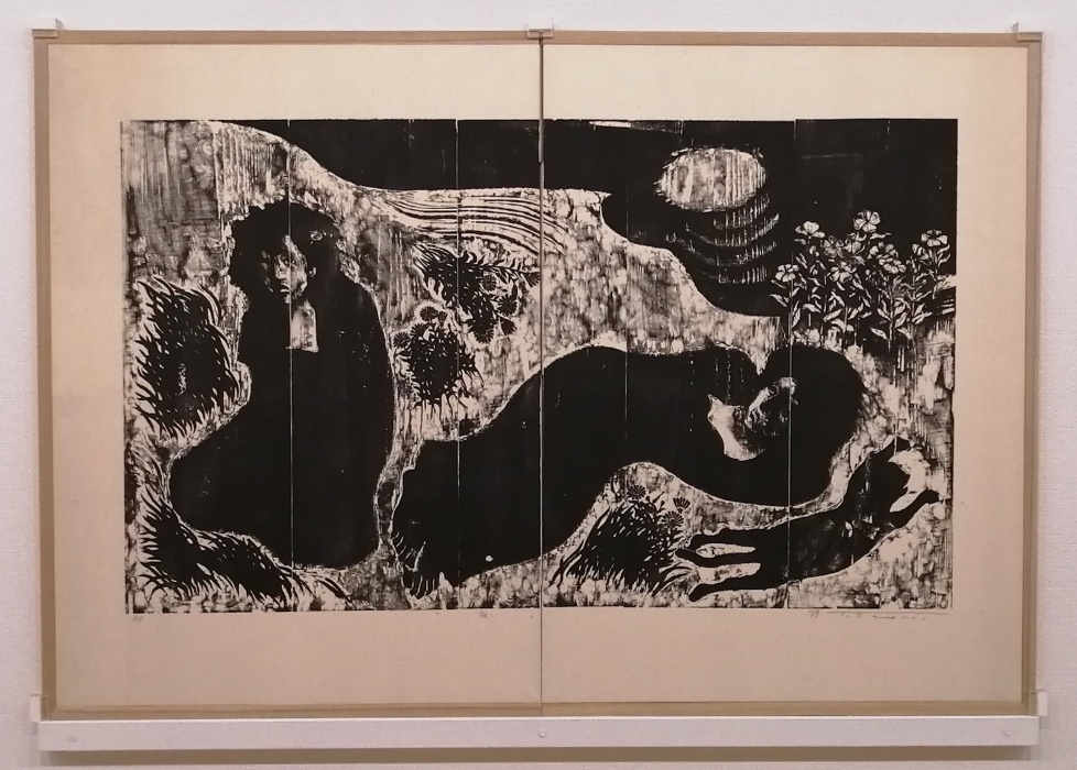 難波田史男〈太陽を紡ぐ少女〉,1968
