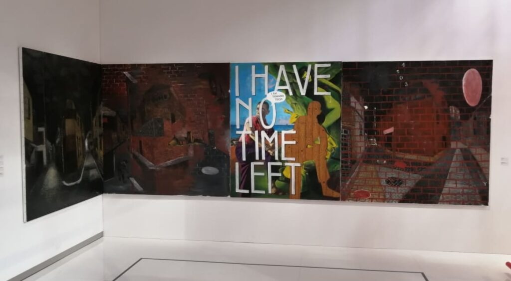 建築は完成されたものではなく過程がすべて。赤い足場はそれを象徴しています。絵画もその過程が大切で、完成されたものはさほど重要ではないのだと。目的(コンセプト)を持たず、思考せず身体に委ね赴くまま描くのが本来の芸術(アート)。きっとそんなことを作者は伝えたいのだろうと思いながら、朗らかな気分で会場を後にしました。
