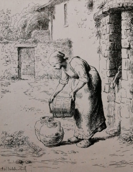 桶の水を空ける婦人(ガラス版画),1862 山梨県立美術館蔵