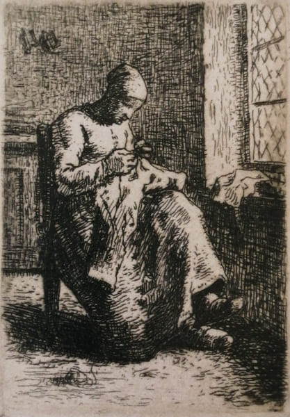 縫物をする女(エッチング),1855-56 山梨県立美術館蔵