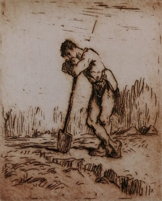 鋤に寄りかかる男(エッチング),1855頃 山梨県立美術館蔵