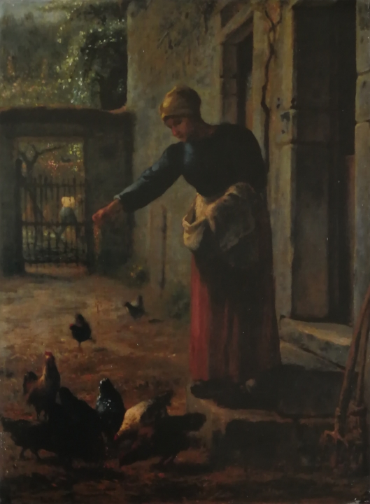 鶏に餌をやる女,1853-56頃 山梨県立美術館蔵