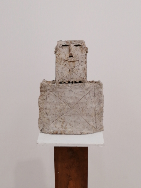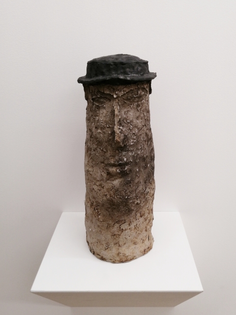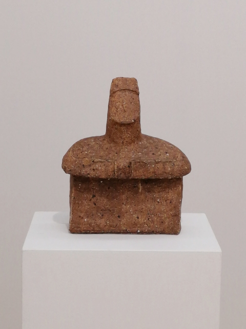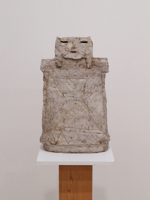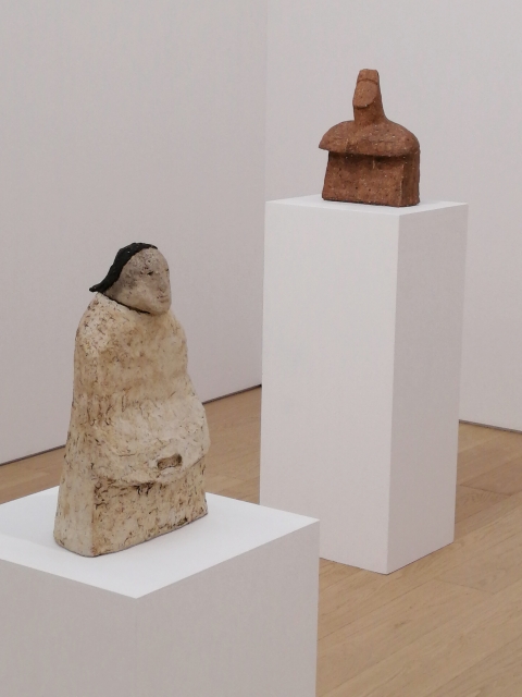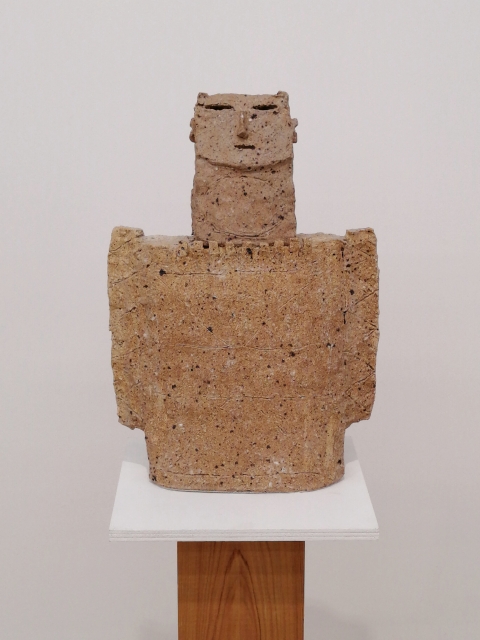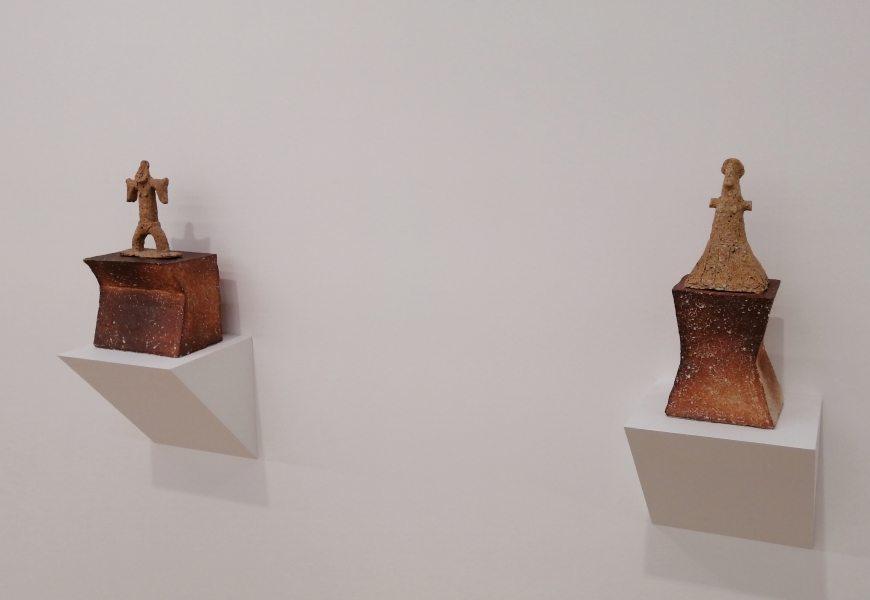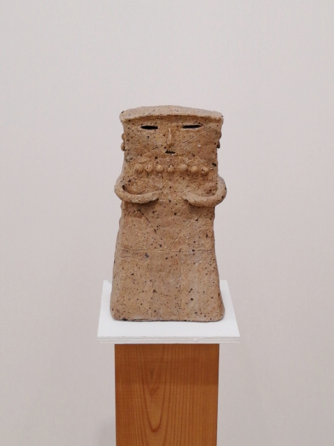 「土の人」展は、今年90歳になった伊藤慶二による最新の陶芸作品展です。真っ白で無機質なギャラリー内に、土偶や埴輪を思わせる小ぶりでやや抽象的な象形の人物像が各々距離を置きながら配置されていました。