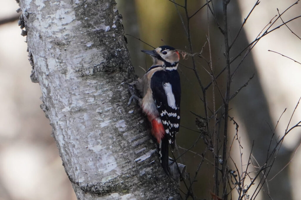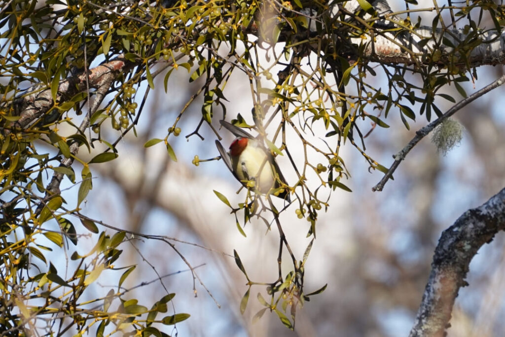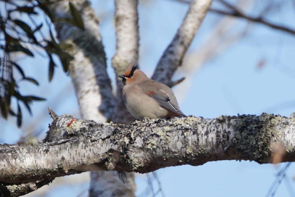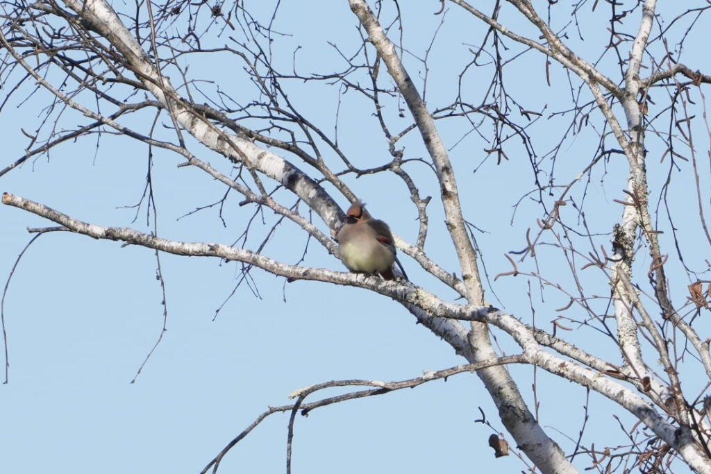 この日もヒレンジャクの群れがヤドリギに集まっていました。遠くて双眼鏡・カメラともになかなか捉えられず。森の中では前回と同様、アカゲラの姿が。その他、ホオジロ、カケス、トビなどが見られました。