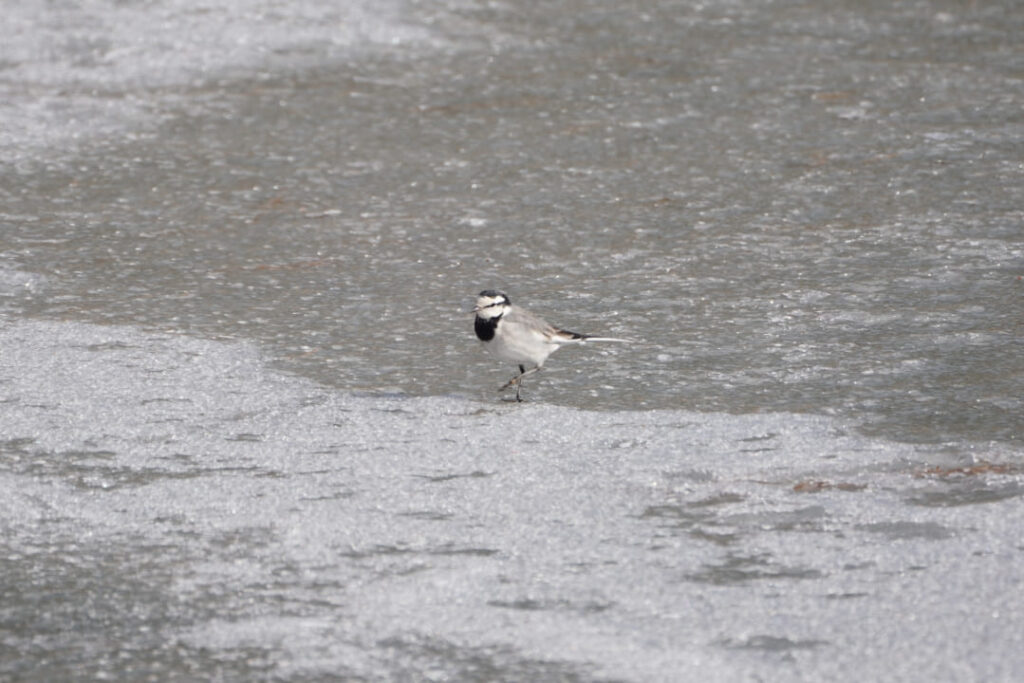 氷上を終始テクテク(トコトコ)歩いているハクセキレイが2羽いました。どうして地面ではなく氷上を歩いているのか? とても愛嬌ありますが。