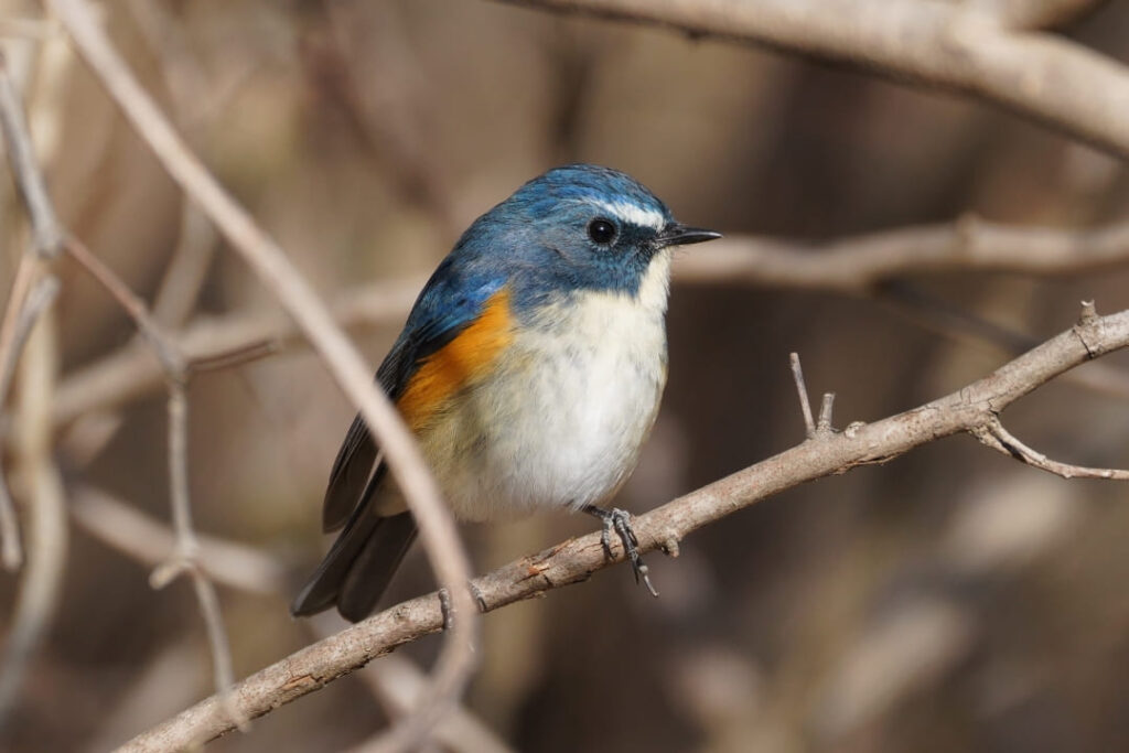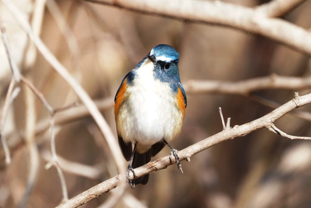 この森では冬季、ヤマガラやシジュウカラの他、ジョウビタキやルリビタキをよく目にします。散策路を歩いていると、ルリビタキの雄と雌が近くに来たのでアップで。